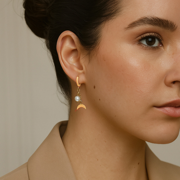 Przepiękne kolczyki z naturalnymi perełkami i lunulą.