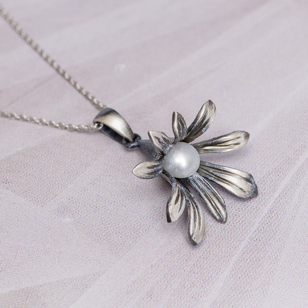 Kolczyki w kształcie dzwoneczków z naturalnymi perełkami. Zostały zaoksydowane, dzięki czemu cały wzór uzyskał unikatowy charakter stylu Vintage.