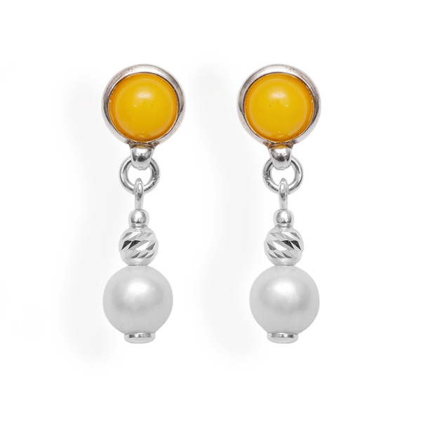 Srebrne kolczyki BURSZTYNY PERŁY - SREBRO 925