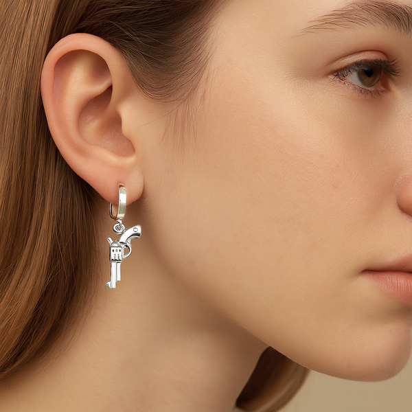 Srebrne kolczyki REWOLWER PISTOLET - SREBRO p 925