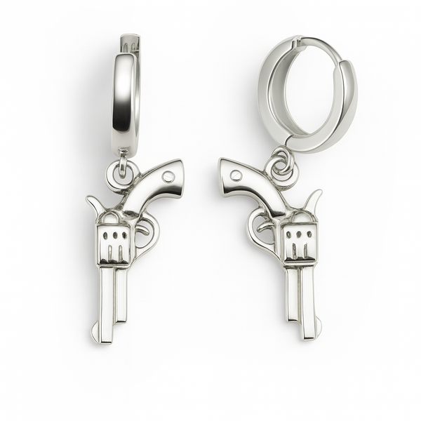 • Rewelacyjne kolczyki w kształcie dwóch rewolwerów