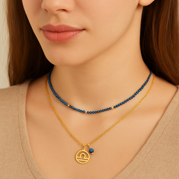 Naszyjnik świetnie komponuje się w parze z drugim, wykonanym w całości z lapisu (można go kupić w innej ofercie), dzięki czemu tworzą spójną i elegancką całość.