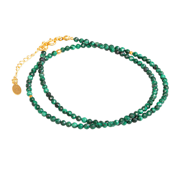 Naszyjnik świetnie komponuje się w parze z drugim naszyjnikiem, który ma zawieszki ze znakiem zodiaku i jednym kamieniem malachitu (można go kupić w innej ofercie). Dzięki czemu tworzą spójną i elegancką całość.
