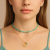 Do naszyjnika został dopięty malutki kamień - naturalny amazonit.