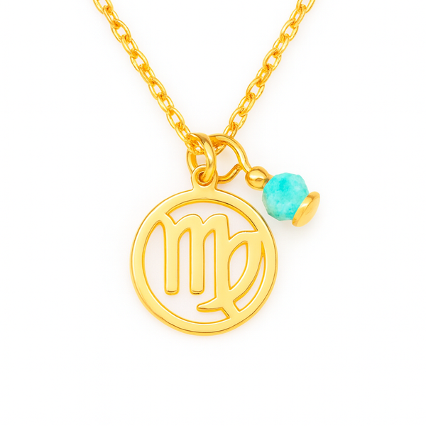 Naszyjnik ze znakiem zodiaku został wykonany ze srebra próby 925 pozłoconego złotem 24K.