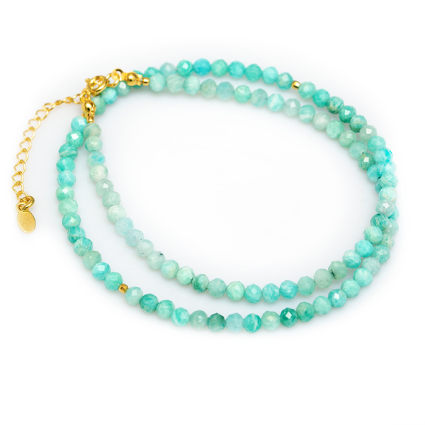 Naszyjnik świetnie komponuje się w parze z drugim naszyjnikiem, który ma zawieszki ze znakiem zodiaku i jednym kamieniem amazonitu (można go kupić w innej ofercie). Dzięki czemu tworzą spójną i elegancką całość.