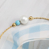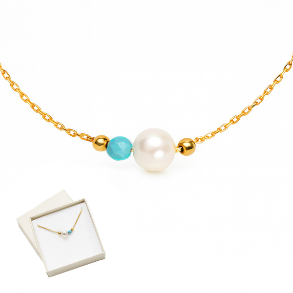 Naszyjnik z naturalną perłą i turkusem wykonany został ze srebra próby 925 i pozłocony złotem 24K.