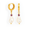 Kolczyki z naturalnymi granatami i oryginalnymi perełkami Swarovskiego, wykonane ze srebra próby 925 i pozłocona złotem 24K.