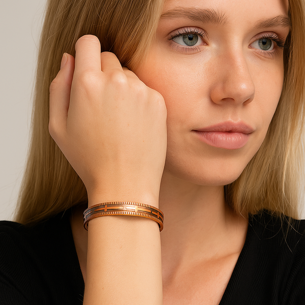 Miedź jest znana ze swoich właściwości antybakteryjnych i wspomagających kondycję skóry, a magnesy mogą wspierać poprawę krążenia, redukcję bólu oraz łagodzenie napięć mięśniowych.