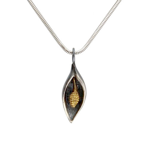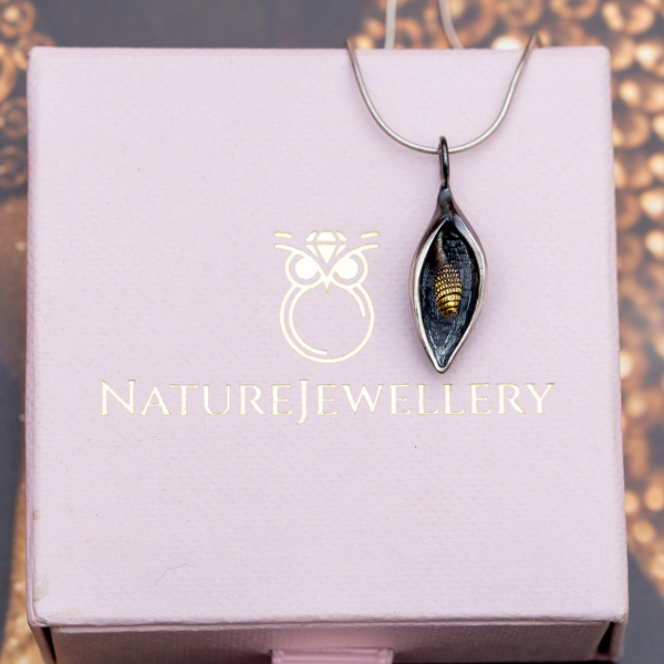 Subtelna zawieszka w kształcie kwiatka. Wykonana z oksydowanego srebra, w środku pręcik zrobiony z mosiądzu. Pełna uroku zachwyca swym starannym wykonaniem i oryginalnością.