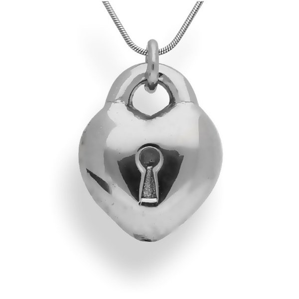 Urocza srebrna zawieszka, próby 925, w kształcie pulchniutkiej kłódeczki.