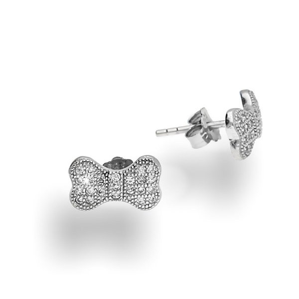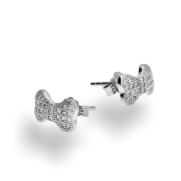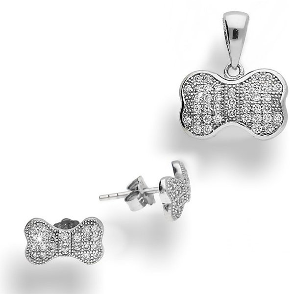Cudowny komplet w kształcie kości. Jest wysadzany drobniutkimi cyrkoniami, które pięknie się mienią odbijając światło.