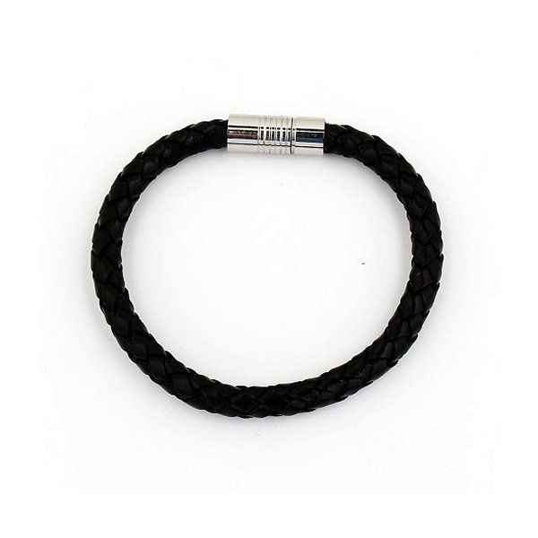 Elegancka i stylowa bransoleta męska, długości 21 cm, wykonana z plecionego, czarnego rzemienia, z wygodnym zapięciem magnetycznym. Dzięki modnemu połączeniu czarnej skóry i stali, jednego z najbardziej popularnych metali w jubilerstwie, uzyskano rewelacyjny efekt. Będzie świetnym dodatkiem do codziennej stylizacji.
